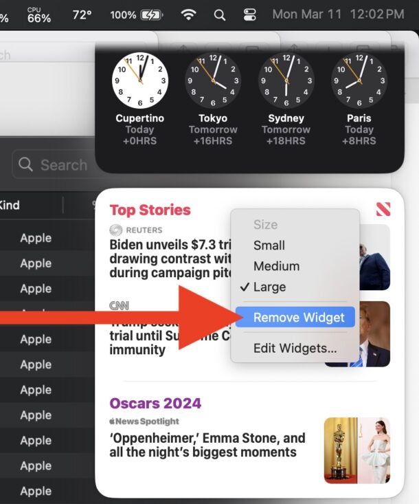 - Fjern enhver "Nyheder"-widget fra dit Mac-skrivebord ved at højreklikke på nyhedswidgetten og vælge "Fjern widget"