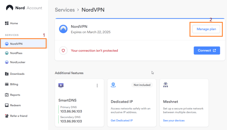 Annullering af automatisk fornyelse er afgørende for denne proces. Ligeledes,du skal annullere den automatiske fornyelse mindst EN MÅNED før din valgte planudløber for at denne metode virker. Så det er bedst at gøre det i dag, så du ikke glemmer det! Endelig,du kan konfigurere NordVPN-fornyelsen inden den sidste måned af din plan.