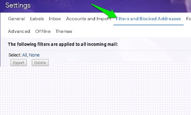 Flyt nu til"Filtre og blokerede adresser"fanen, og du finder alle blokerede adresser her. Sørg for, at den bestemte e-mailadresse ikke er blokeret eller filtreret her.