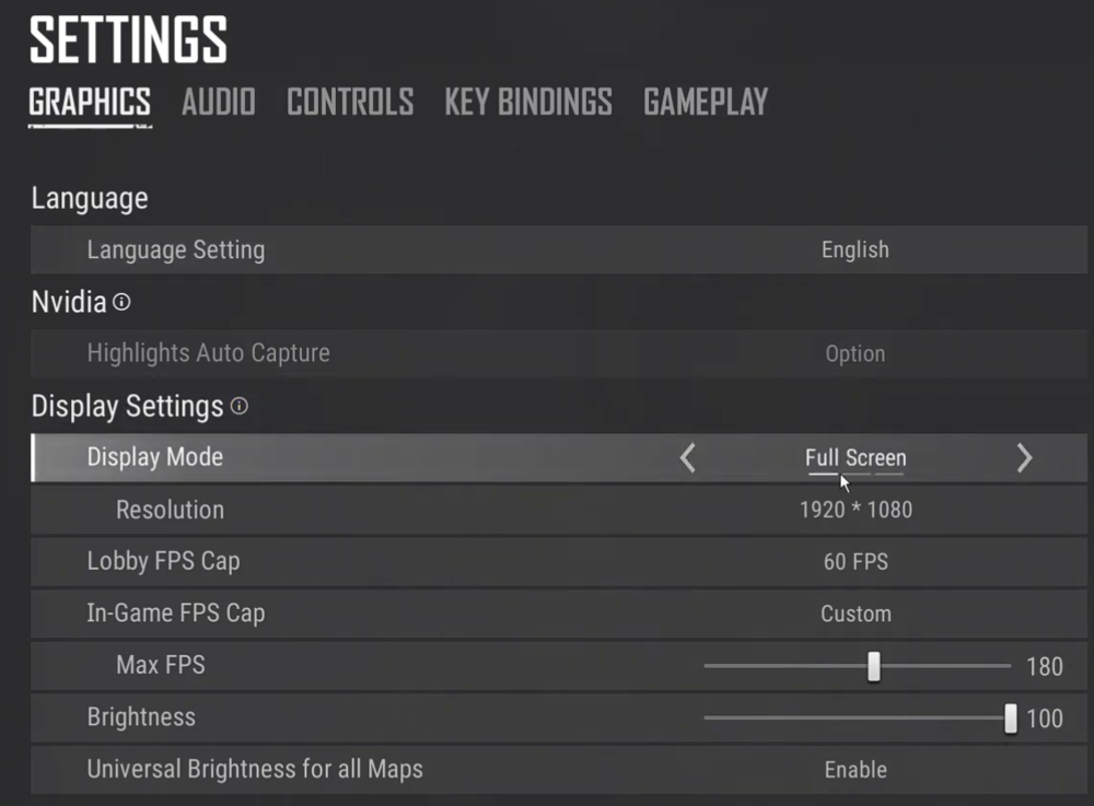 I skærmindstillingerne skal du sikre dig, at skærmtilstanden er indstillet til fuld skærm, og at opløsningen matcher din oprindelige skærmopløsning. For at opretholde en stabil spiloplevelse skal du begrænse din framerate til en værdi, dit system konsekvent kan opnå, som bør være over din skærms opdateringshastighed. Hold lobbyens FPS-loft på 60. I de avancerede indstillinger skal du indstille din gengivelsesskala til 100%. Overvejer at sænke din gengivelsesskala, hvis du stadig har brug for et ydelsesboost efter at have anvendt de efterfølgende tweaks. Vær dog opmærksom på, at dette vil reducere PUBGs visuelle kvalitet, men det vil forbedre din generelle ydeevne.