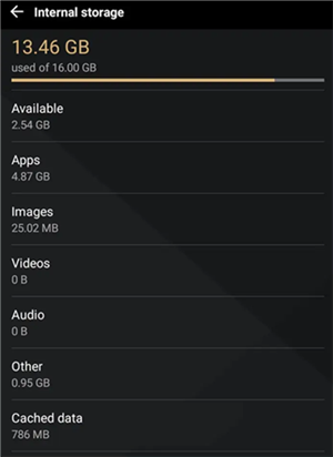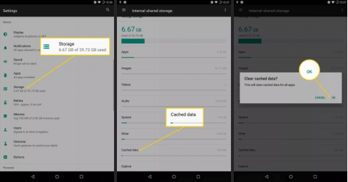 2.Tryk på indstillingen "Lagring", og tryk på knappen "Cached Data".