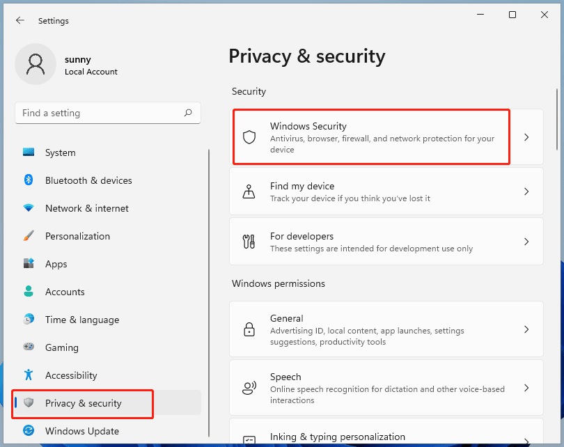 Trin 2. I vinduet Indstillinger skal du vælge Privatliv og sikkerhed -> Windows-sikkerhed.