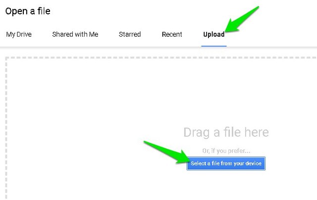 3. Flyt nu til"Upload"fanen og klik på"Vælg en fil fra din enhed"-knap for at finde PDF-filen pådin pc og upload den.