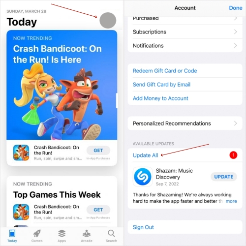 Løsning 4. Opdater relevante apps og iPhone