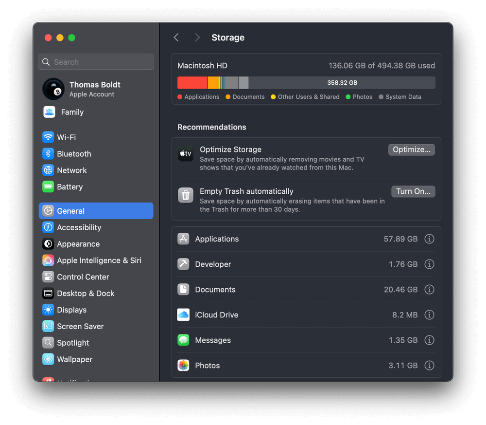 - macOS bietet einen schnellen Überblick darüber, wie viel Speicherplatz auf Ihrem Laufwerk belegt ist, sodass Sie wissen, an welchen Bereichen Sie arbeiten müssen.