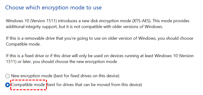 Schritt 7. Wählen Sie einen Verschlüsselungsmodus: Neuer Verschlüsselungsmodus oder Kompatibler Modus. Hier wählen wir ausKompatibler Modus. Dann klicken SieNächste.