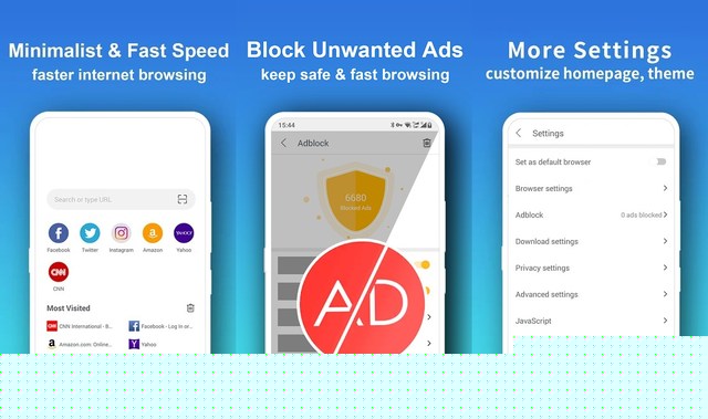 Pure Browser ist nicht sehr beliebt, aber definitiv einer der besten Browser für Low-End-Geräte. Es handelt sich um einen minimalistischen Browser, der sich darauf konzentriert, nur die wesentlichen Funktionen anzubieten und gleichzeitig sicherzustellen, dass er Ihr Telefon so wenig wie möglich belastet. Wie Sie sicher erraten haben, ist der Browser mit einem Werbeblocker ausgestattet, um Ihr Surferlebnis reibungslos zu gestalten.