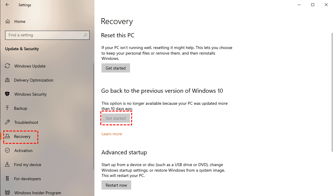 Weg 5. Aktualisieren Sie oder kehren Sie zur vorherigen Windows-Version zurück