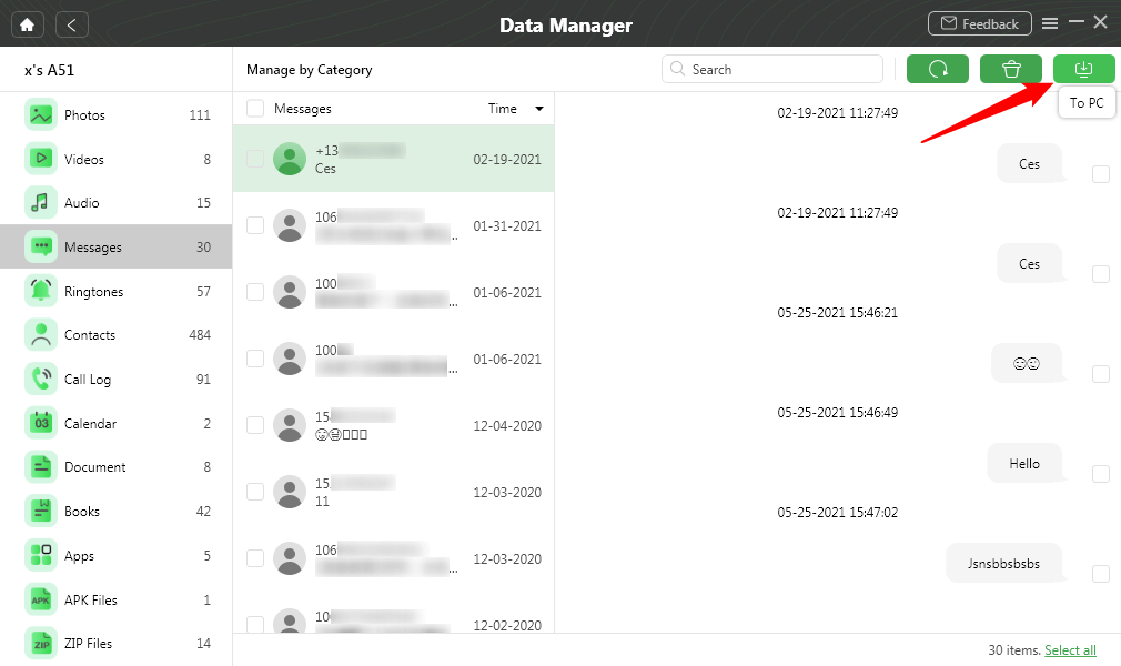 3. Übertragen Sie Textnachrichten von Samsung auf den Computer