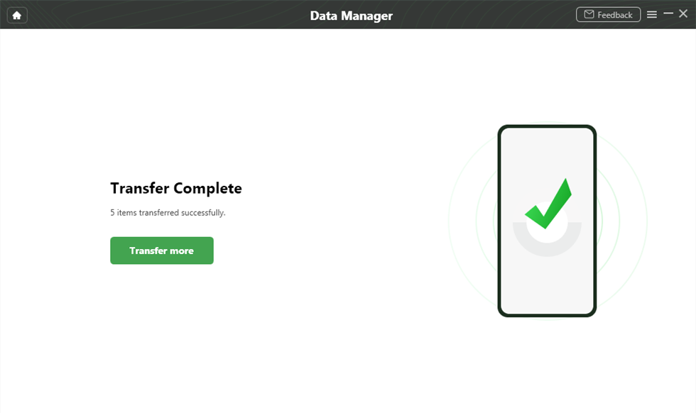Warten Sie einfach einen Moment. Wenn der Übertragungsvorgang abgeschlossen ist, wird die folgende Benutzeroberfläche angezeigt.