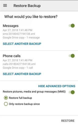 Diese App bietet ein einfaches Sicherungsmodell, da Sie damit Nachrichten sichern können, indem Sie Ihr Gerät mit Ihrem Google-Profil verknüpfen, in dem die Nachrichten gespeichert sind. Wie DroidKit können Sie mit SMS Backup+ Bilder in Ihre Backup-Nachrichten einfügen.