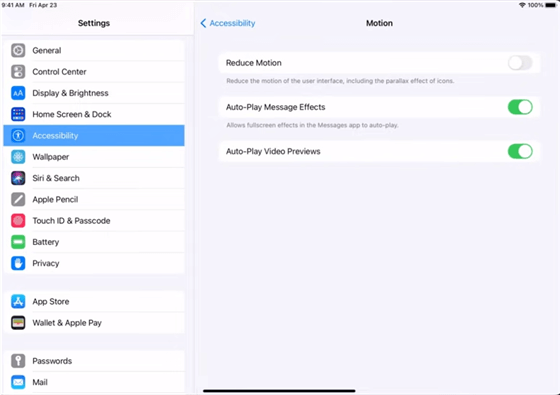 Schritt 4. Kehren Sie zum Menü „Eingabehilfen“ zurück und bewegen Sie den Schieberegler auf die Position „Zulassen“ vor „Bewegung reduzieren“.