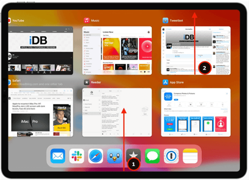 Schritt 1: Schieben Sie vom unteren Rand des Bildschirms nach oben und halten Sie ihn gedrückt, wenn Sie sich auf dem Startbildschirm oder in einer App befinden. Sie erhalten eine Liste aller geöffneten Anwendungen sowie eine Vorschau.