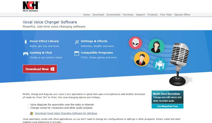 NCH Voxal Voice Changer ist ein bewährter Sprachwechsler für VRChat mit über 40 anpassbaren Sprachfiltern. Es bietet Optionen wie Roboter-, Alien- oder Pitch-Shifting-Effekte, um sicherzustellen, dass die Stimme Ihres VRChat-Avatars perfekt zu seiner Persönlichkeit passt. Leicht und systemfreundlich läuft es beim Spielen oder Streamen reibungslos. Die Möglichkeit, benutzerdefinierte Filter zu erstellen und zu speichern, erhöht die Vielseitigkeit.