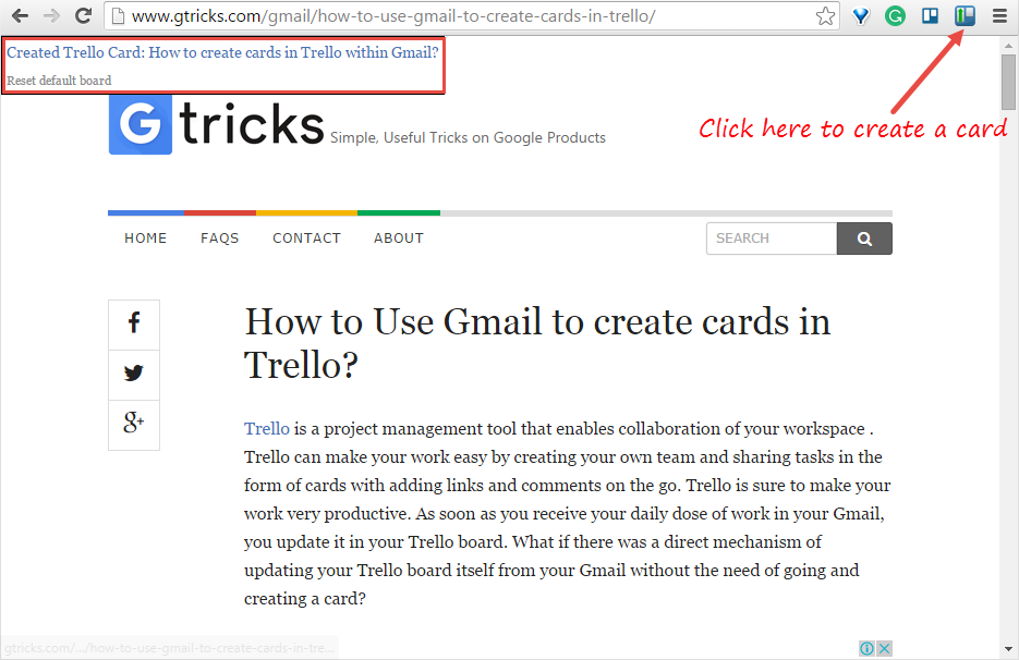 Send to Trello ist eine einfache, benutzerfreundliche Erweiterung für Chrome. Installieren Sie die Erweiterung aus dem Chrome Store und sie hilft Ihnen dabei, aus der Seite, auf der Sie surfen, eine Karte mit dem Link als Beschreibung zu erstellen. Nach der Installation werden Sie nach einem API-Schlüssel gefragt, den Sie von Trello erhalten können. Autorisieren Sie die Anwendung mit Trello und wählen Sie dann das Board und die Liste aus, um Karten zu erstellen. Sie können die Liste und das Board jederzeit ändern.