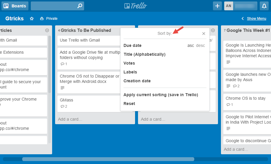 Wir empfehlen Ihnen dringend die InstallationUltimellofür seine Sortierfähigkeit. Die zweite Empfehlung geht an Chromello für Trello, das die einfachste Möglichkeit zum Hinzufügen von Karten bietet. Ich wünschte, es gäbe eine offizielle Erweiterung, die mehr kann, aber bis dahin viel Spaß damit.