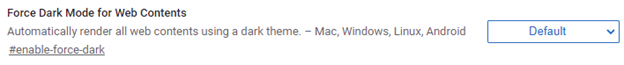 Wie der Name schon sagt, ermöglicht Ihnen dieses Flag, das Browserdesign auf dunkel zu ändern. Dies ist jedoch nicht die einzige Funktion, die es unterstützt. Sie können auch die Anwendung eines dunklen Designs auf Webseiten erzwingen. Mit dieser Flagge sind Sie nicht auf Erweiterungen von Drittanbietern wie Dark Reader angewiesen, um alles Dunkle zu transformieren.