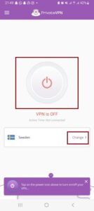 - Kehren Sie zur Startseite zurück und tippen Sie auf die große Einschalttaste, um eine Verbindung zum vorgeschlagenen Server herzustellen. Oder tippen Sie auf „Ändern” um einen anderen Server auszuwählen.