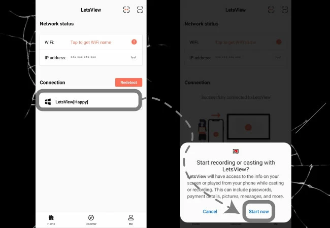 - Tippen Sie aufName Ihres Computersauf Ihrem Bildschirm und wählen SieSpiegelung des Telefonbildschirmsund einfach zuschlagenBeginnen Sie jetztum mit dem Spiegeln zu beginnen.