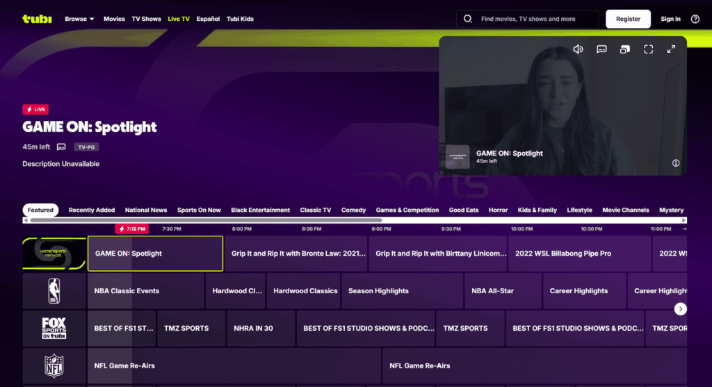 Tubi TV ist ein kostenloser, werbefinanzierter Streaming-Dienst, der eine große Auswahl an Filmen, Fernsehsendungen und eine wachsende Bibliothek mit Sportinhalten bietet. Obwohl es sich nicht um einen direkten Klon von FirstRowSports handelt, bietet es über lizenzierte Partnerschaften Zugriff auf Sportdokumentationen, Highlights und bestimmte Live-Events.