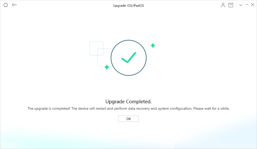 Schritt 5. Warten Sie eine Weile, Sie erhalten die fertige Seite und Ihr iPhone wird mit der neuesten iOS-Version neu gestartet.