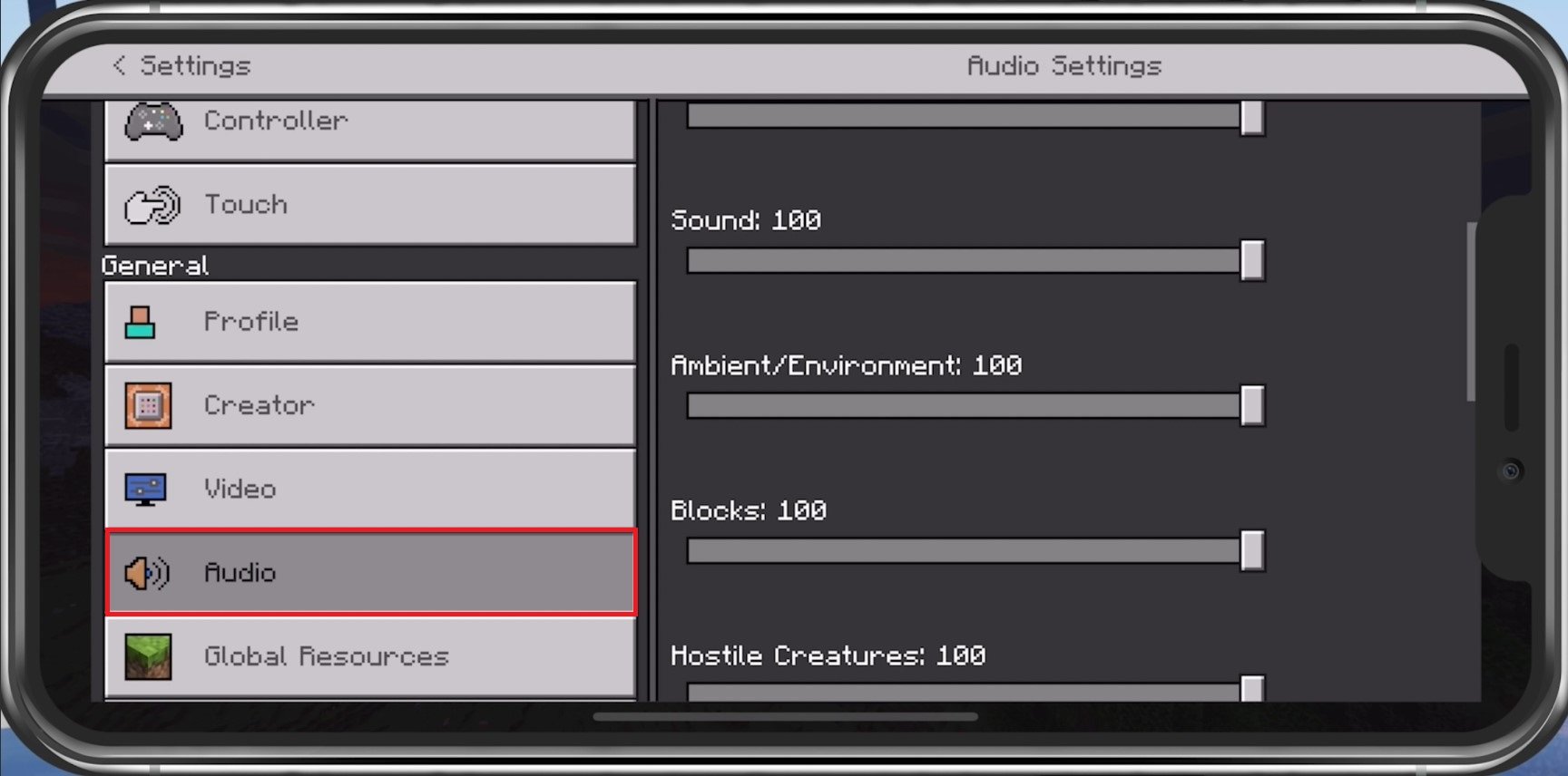 Minecraft PE-Audioeinstellungen
