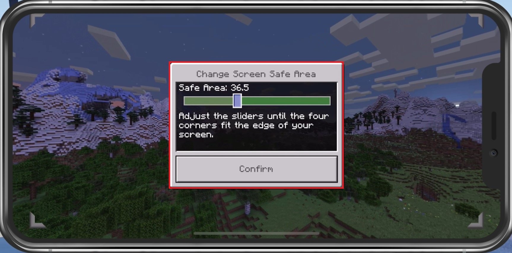 Minecraft PE > Einstellungen > Bildschirmsicheren Bereich ändern