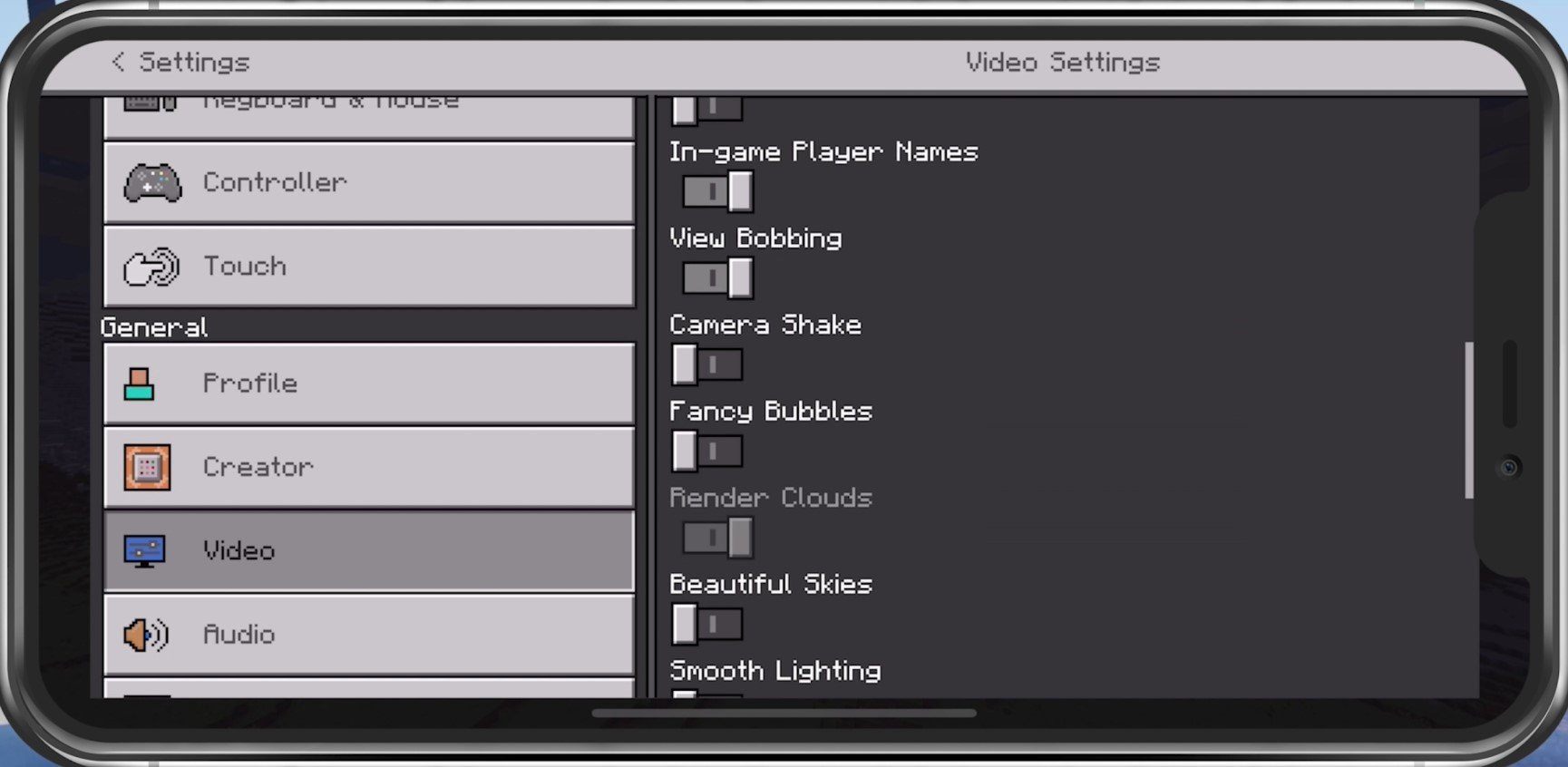 Minecraft Pocket Edition-Videoeinstellungen