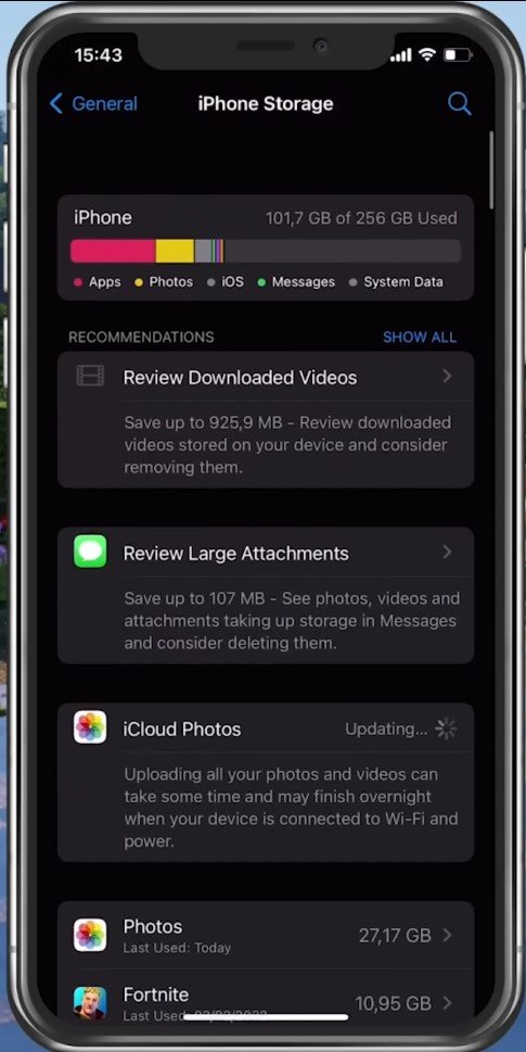 iPhone-Einstellungen > Allgemein > iPhone-Speicher