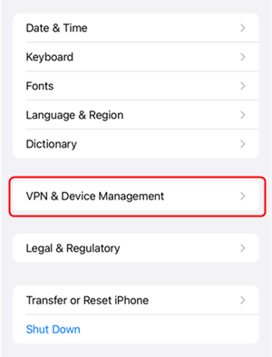 Schritt 1: Gehen Sie zu Einstellungen > Tippen Sie auf Allgemein und scrollen Sie nach unten, um auf die Option Profil oder Profile und Geräteverwaltung zu klicken.