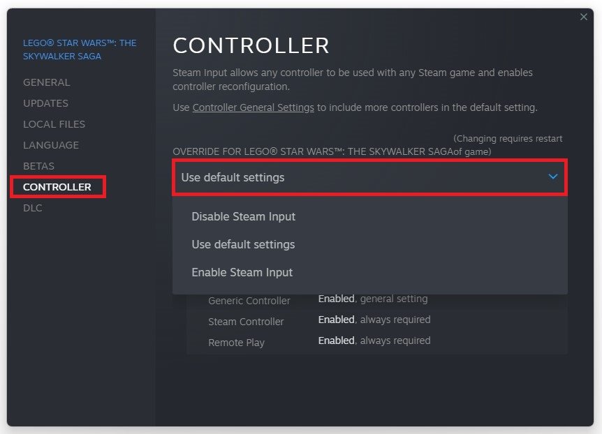 Nachdem Sie das erforderliche Kontrollkästchen aktiviert haben, können Sie den Big Picture-Modus schließen und LEGO Star Wars auf Ihrem System starten. Navigieren Sie schließlich im Spiel zu IhremController-KonfigurationOptionen nach dem erneuten Anschließen Ihres Controllers. Stellen Sie sicher, dass diese Optionen Ihren Wünschen entsprechend eingestellt sind und Ihr Controller-Problem beim Spielen im geteilten Bildschirm behoben sein sollte.