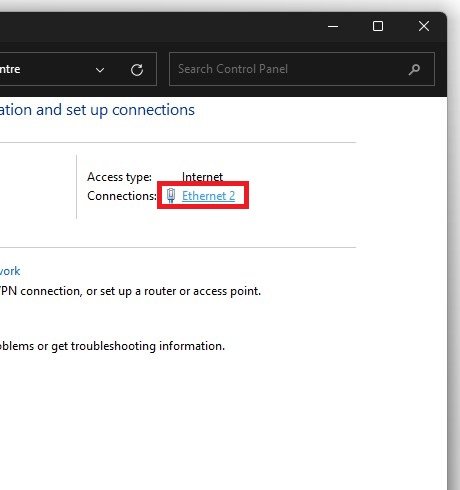 Klicken Sie aufNetzwerk- und Freigabecenter, und wählen Sie Ihre Verbindung aus.