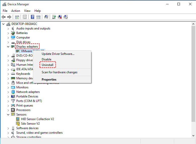 Schritt 2.Erweitern Sie im Fenster „Geräte-Manager“ die Kategorie „Anzeigeadapter“ und wählen Sie den Befehl „Aktualisieren“ oder „Deinstallieren“.