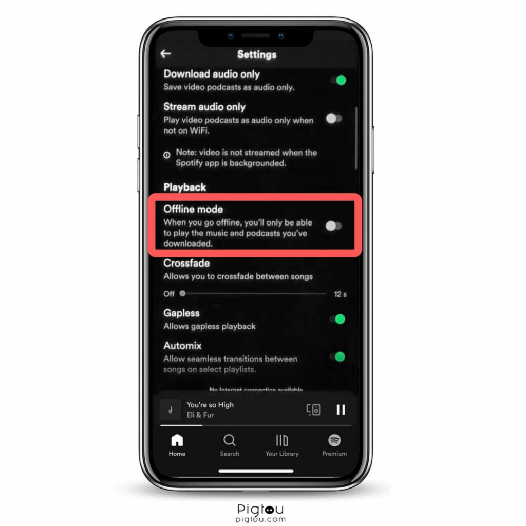Deaktivieren Sie den Offline-Modus auf Spotify / Bild: Pigtou.comSpielen Sie ein Lied weiterSpotifyum zu überprüfen, ob dieFehlerDie Meldung wurde behoben und Sie können die ununterbrochene Wiedergabe genießen! Wenn Ihr Problem nicht gelöst wurde, lesen Sie weiter!