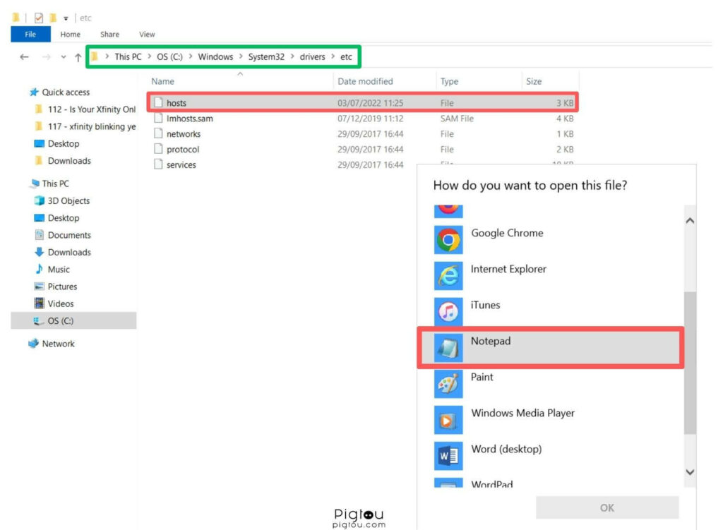 Öffnen Sie die Hosts-Datei mit Notepad unter Windows / Bild: Pigtou.com- Suchen Sie nach Einträgen mitSpotifyin der Adresse.