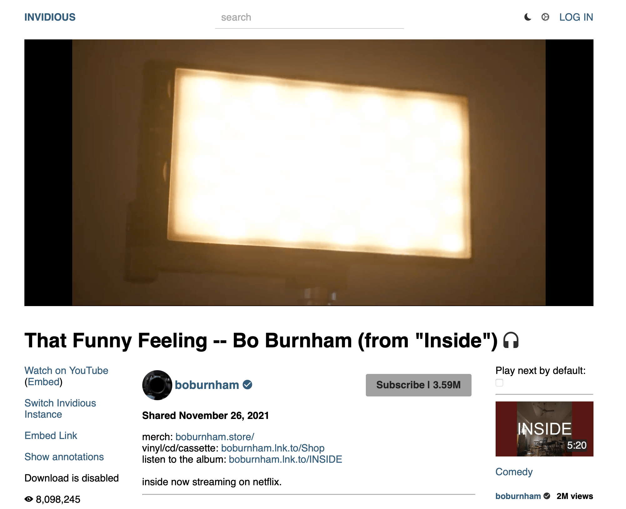 Es gibt ein paar Nachteile. Invidious ist manchmal etwas langsamer als beispielsweise YouTube und gelegentlich funktioniert ein Video nicht. Sie können Invidious auch nicht mit Ihrem YouTube-Konto verwenden – es ist eine völlig andere Website. Dies bedeutet, dass Funktionen wie Abonnements, Kommentare und das Verfolgen angesehener Videos nicht funktionieren. Wenn Ihnen das jedoch egal ist, könnte Invidious eine Möglichkeit sein, YouTube-Videos anzusehen, ohne dass YouTube Sie in seinen Bann zieht.