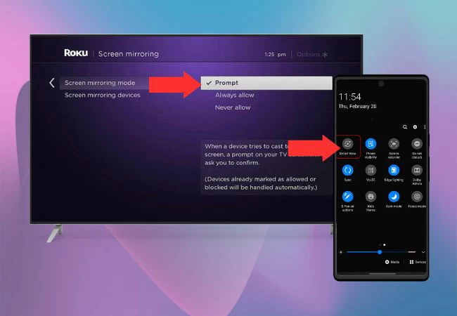 - Gehen Sie auf Ihrem Roku-Fernseher zu Einstellungen > System > Bildschirmspiegelung > Bildschirmspiegelungsmodus und stellen Sie sicher, dass er auf „Eingabeaufforderung“ eingestellt ist.