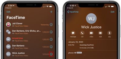 - Tippen Sie in der Liste der letzten Anrufe auf das „i“ neben dem Namen einer Person.