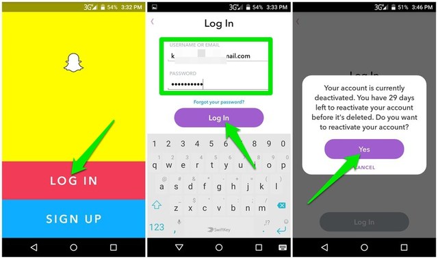 - Öffnen Sie die Snapchat-App auf Ihrem Android-Telefon und geben Sie Benutzernamen und Passwort ein, um sich anzumelden.
