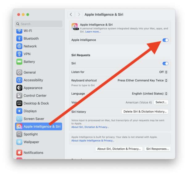 Beachten Sie: Wenn diese Einstellungsoptionen auf Ihrem iPhone, iPad oder Mac nicht verfügbar sind, bedeutet dies, dass Sie auf diesem bestimmten Gerät keine Apple Intelligence-Unterstützung haben und es nichts zu deaktivieren oder zu deaktivieren gibt.