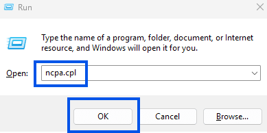 Schritt 1: Drücken Sie „Win + R“. Geben Sie „ncpa.cpl“ ein und klicken Sie auf „OK“.