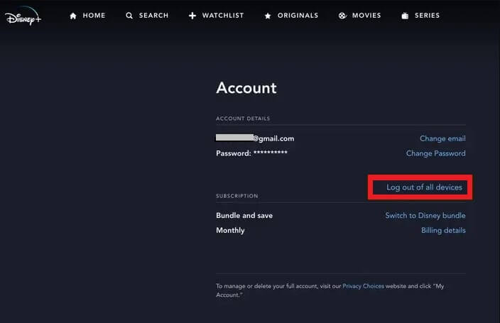 Wenn die Anzahl der Verbindungen überschritten wird, kann es manchmal vorkommen, dass Sie nicht mehr auf die App zugreifen können. Melden Sie sich von allen Disney Plus-Konten auf Ihrem Gerät ab und erneut an, um das Problem zu beheben. So machen Sie es.