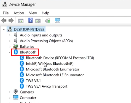 Erweitern Sie im Fenster „Geräte-Manager“ den Abschnitt „Bluetooth“.