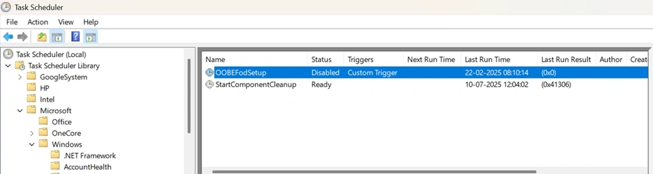 - Klicken Sie im linken Bereich auf Taskplaner-Bibliothek → Microsoft → Windows → Wartung