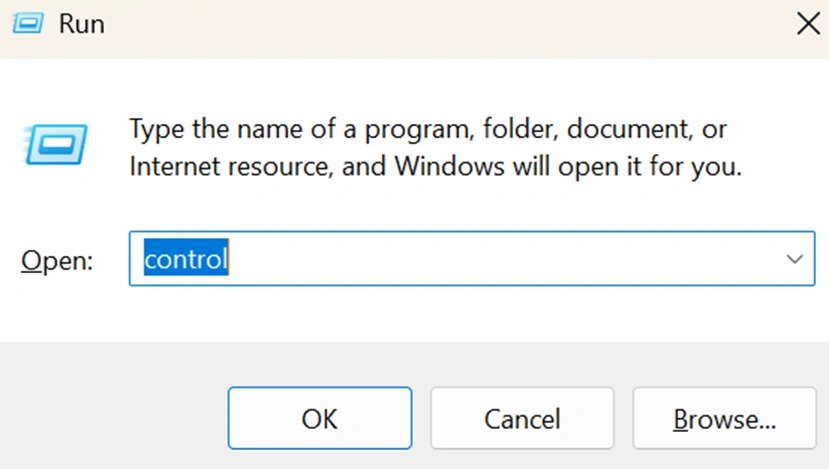 - Drücken Sie Win + R, um das RUN-Feld zu starten, geben Sie Control ein und drücken Sie die OK-Taste.