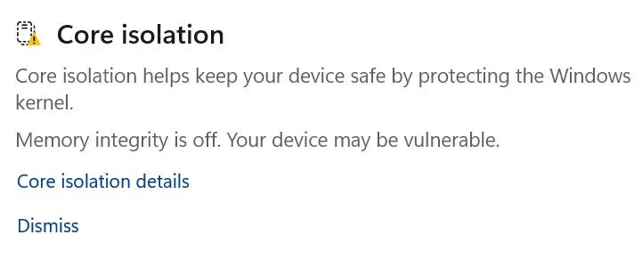 Fix 5 – Deaktivieren Sie die Windows-Speicherintegrität (Kernisolation)