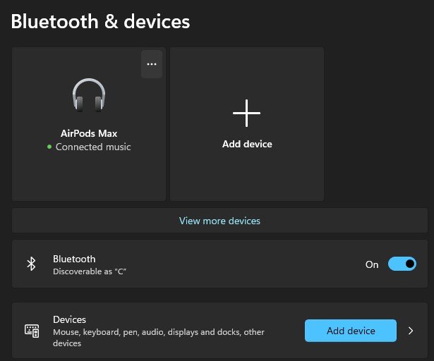 Wenn Sie Bluetooth-Kopfhörer verbinden möchten, navigieren Sie zuBluetooth und GeräteAbschnitt Ihrer Einstellungen. Entfernen Sie das Gerät und starten Sie den Kopplungsvorgang erneut, wenn Ihre Kopfhörer bereits verbunden sind.