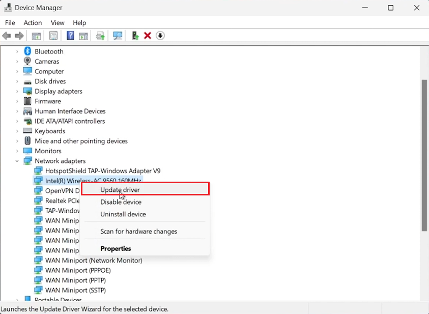 Geräte-Manager > Netzwerkadapter > Treiber aktualisieren