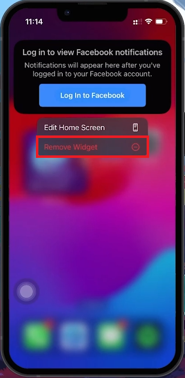 Wählen Sie „Widget entfernen“:Tippen Sie, um das Widget von Ihrem Startbildschirm zu entfernen.