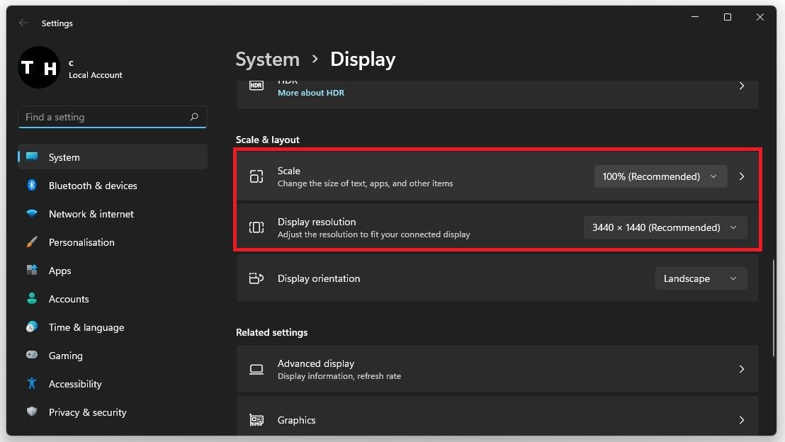 Stellen Sie sicher, dass die Skalierung auf 100 % eingestellt ist und Sie eine normale native Auflösung verwenden.
